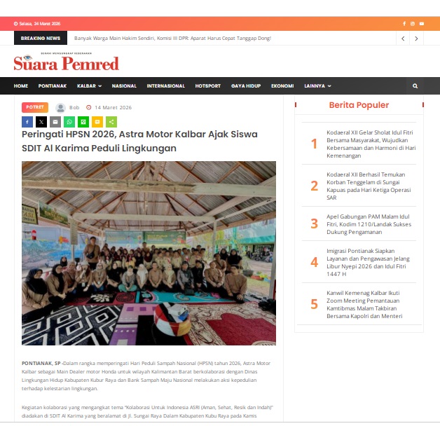 Peringati HPSN 2026, Astra Motor Kalbar Ajak Siswa SDIT Al Karima Peduli Lingkungan by masmul 14 Maret 2026 in Silahkan kunjungi https://www.suarapemredkalbar.com/read/potret/14032026/peringati-hpsn-2026-astra-motor-kalbar-ajak-siswa-sdit-al-karima-peduli-lingkungan. You Might Like Regional Public Launching New ADV160 The SUV Pride Grand Launching New PCX 160 Truly Exceptional! Tetap hati-hati ya bro sist berkendara saat hujan.