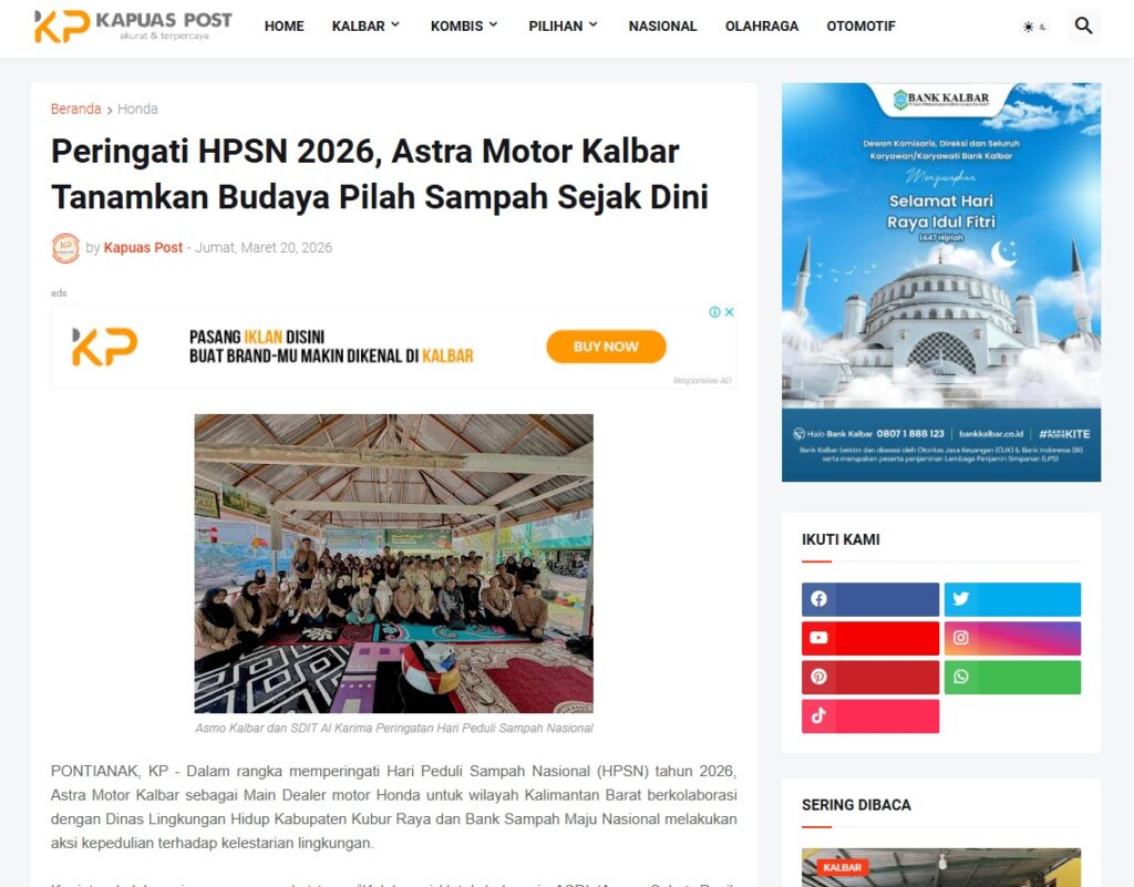 Peringati HPSN 2026, Astra Motor Kalbar Tanamkan Budaya Pilah Sampah Sejak Dini by Muhammad Arif 20 Maret 2026 in Silahkan kunjungi https://www.kapuaspost.web.id/2026/03/peringati-hpsn-2026-astra-motor-kalbar.html. Tags: astra Astra Motor kalbar Astra Motor Pontianak astramotor honda kalbar pontianak sepeda motor You Might Like Regional Public Launching New ADV160 The SUV Pride Grand Launching New PCX 160 Truly Exceptional! Tetap hati-hati ya bro sist berkendara saat hujan.