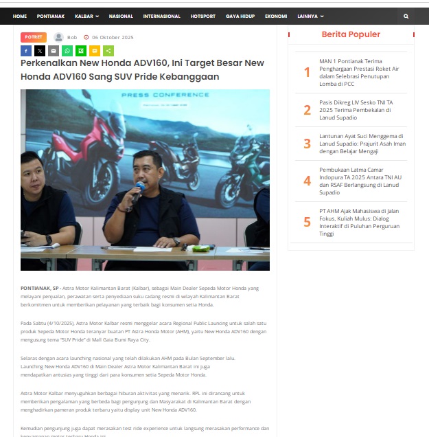 Perkenalkan New Honda ADV160, Ini Target Besar New Honda ADV160 Sang SUV Pride Kebanggaan by masmul 6 Oktober 2025 in Silahkan kunjungi https://www.suarapemredkalbar.com/read/potret/06102025/perkenalkan-new-honda-adv160-ini-target-besar-new-honda-adv160-sang-suv-pride-kebanggaan. You Might Like Regional Public Launching New ADV160 The SUV Pride Grand Launching New PCX 160 Truly Exceptional! Tetap hati-hati ya bro sist berkendara saat hujan.