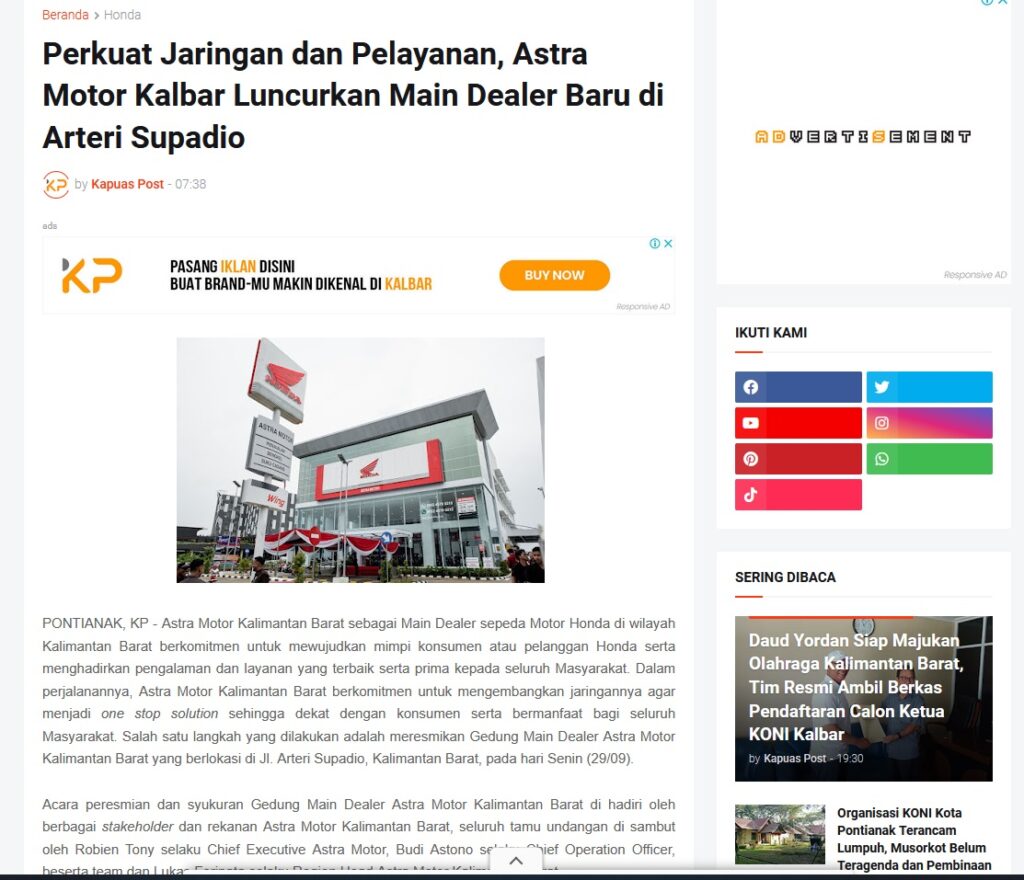Perkuat Jaringan dan Pelayanan, Astra Motor Kalbar Luncurkan Main Dealer Baru di Arteri Supadio by Muhammad Arif 4 Desember 2025 in Silahkan kunjungi https://www.kapuaspost.web.id/2025/12/perkuat-jaringan-dan-pelayanan-astra.html. Tags: astra Astra Motor kalbar Astra Motor Pontianak astramotor honda kalbar pontianak sepeda motor You Might Like Regional Public Launching New ADV160 The SUV Pride Grand Launching New PCX 160 Truly Exceptional! Tetap hati-hati ya bro sist berkendara saat hujan.