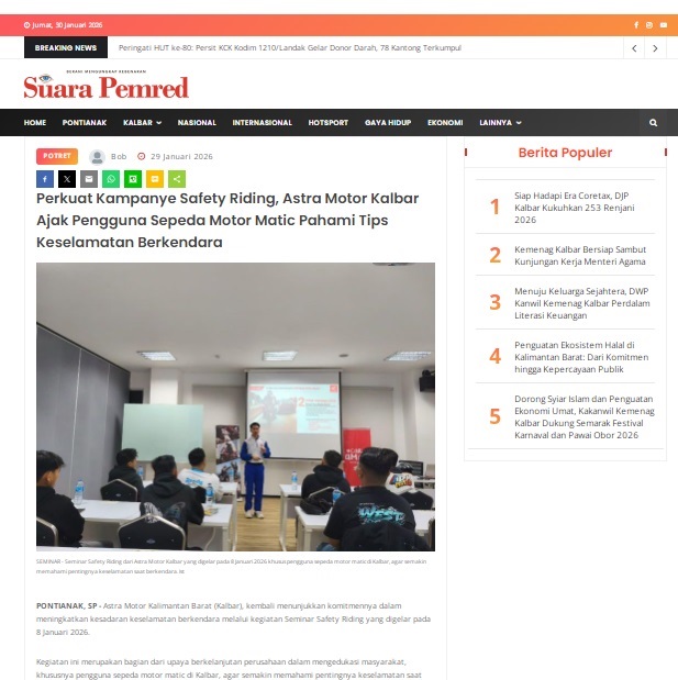 Perkuat Kampanye Safety Riding, Astra Motor Kalbar Ajak Pengguna Sepeda Motor Matic Pahami Tips Keselamatan Berkendara by masmul 29 Januari 2026 in Silahkan kunjungi https://www.suarapemredkalbar.com/read/potret/29012026/perkuat-kampanye-safety-riding-astra-motor-kalbar-ajak-pengguna-sepeda-motor-matic-pahami-tips-keselamatan-berkendara. You Might Like Regional Public Launching New ADV160 The SUV Pride Grand Launching New PCX 160 Truly Exceptional! Tetap hati-hati ya bro sist berkendara saat hujan.