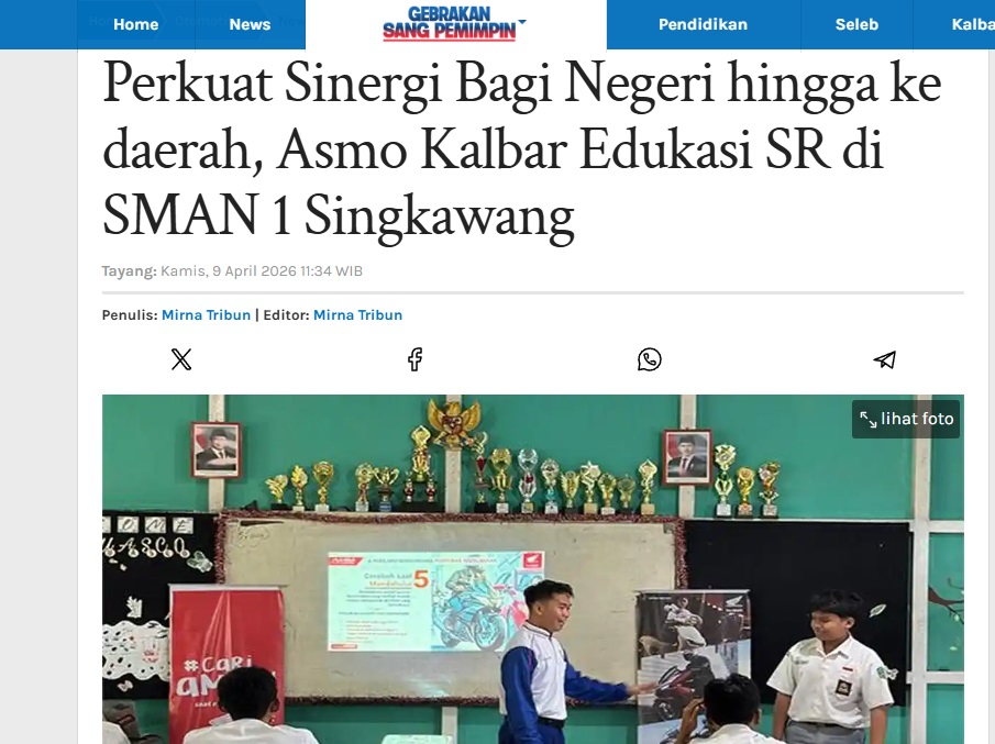 Perkuat Sinergi Bagi Negeri hingga ke daerah, Asmo Kalbar Edukasi SR di SMAN 1 Singkawang by Nina Soraya 9 April 2026 in Silahkan kunjungi https://pontianak.tribunnews.com/otomotif/1168215/perkuat-sinergi-bagi-negeri-hingga-ke-daerah-asmo-kalbar-edukasi-sr-di-sman-1-singkawang. You Might Like Regional Public Launching New ADV160 The SUV Pride Grand Launching New PCX 160 Truly Exceptional! Tetap hati-hati ya bro sist berkendara saat hujan.