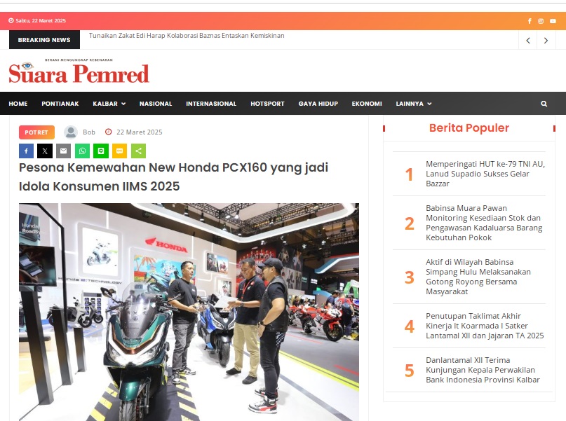 Pesona Kemewahan New Honda PCX160 yang jadi Idola Konsumen IIMS 2025 by masmul 22 Maret 2025 in Silahkan kunjungi https://www.suarapemredkalbar.com/read/potret/22032025/pesona-kemewahan-new-honda-pcx160-yang-jadi-idola-konsumen-iims-2025. You Might Like Grand Launching New PCX 160 Truly Exceptional! Tetap hati-hati ya bro sist berkendara saat hujan. Persiapkan Motormu Sebelum Mudik