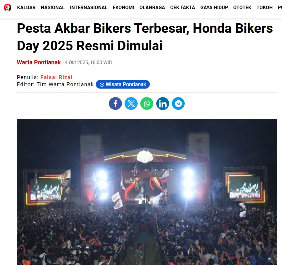 Pesta Akbar Bikers Terbesar, Honda Bikers Day 2025 Resmi Dimulai by Faisal Rizal 4 Oktober 2025 in Silahkan kunjungi https://wartapontianak.pikiran-rakyat.com/gaya-hidup/pr-1179693593/pesta-akbar-bikers-terbesar-honda-bikers-day-2025-resmi-dimulai. You Might Like Regional Public Launching New ADV160 The SUV Pride Grand Launching New PCX 160 Truly Exceptional! Tetap hati-hati ya bro sist berkendara saat hujan.