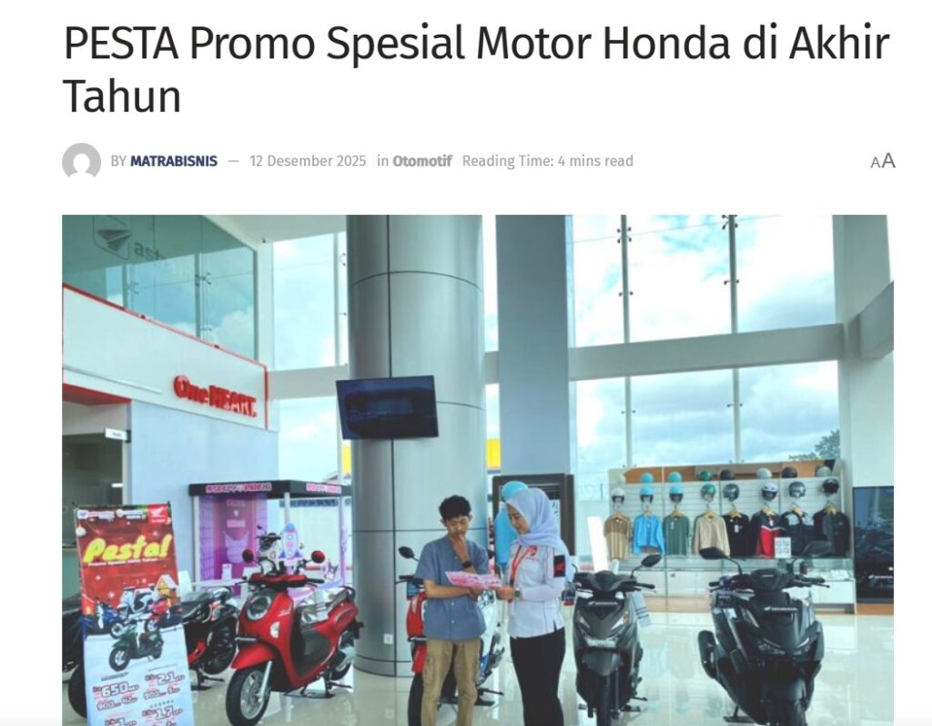 PESTA Promo Spesial Motor Honda di Akhir Tahun by Sri Yuliantiningsih 12 Desember 2025 in Silahkan kunjungi https://matrabisnis.id/2025/12/12/pesta-promo-spesial-motor-honda-di-akhir-tahun/. You Might Like Regional Public Launching New ADV160 The SUV Pride Grand Launching New PCX 160 Truly Exceptional! Tetap hati-hati ya bro sist berkendara saat hujan.