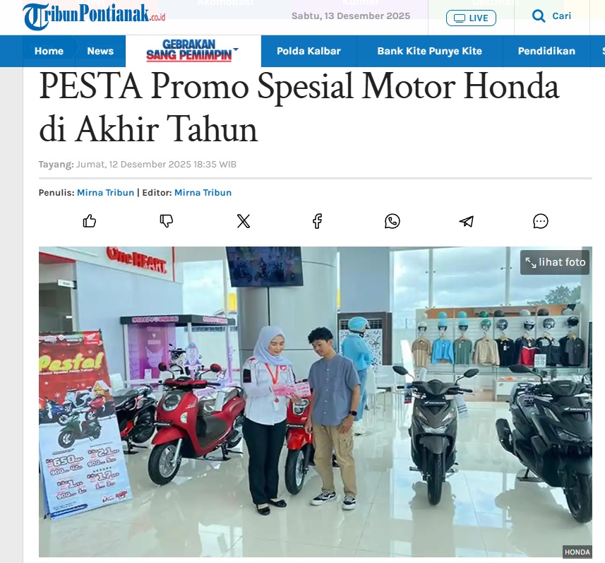 PESTA Promo Spesial Motor Honda di Akhir Tahun by Nina Soraya 12 Desember 2025 in Silahkan kunjungi https://pontianak.tribunnews.com/otomotif/1154058/pesta-promo-spesial-motor-honda-di-akhir-tahun. You Might Like Regional Public Launching New ADV160 The SUV Pride Grand Launching New PCX 160 Truly Exceptional! Tetap hati-hati ya bro sist berkendara saat hujan.