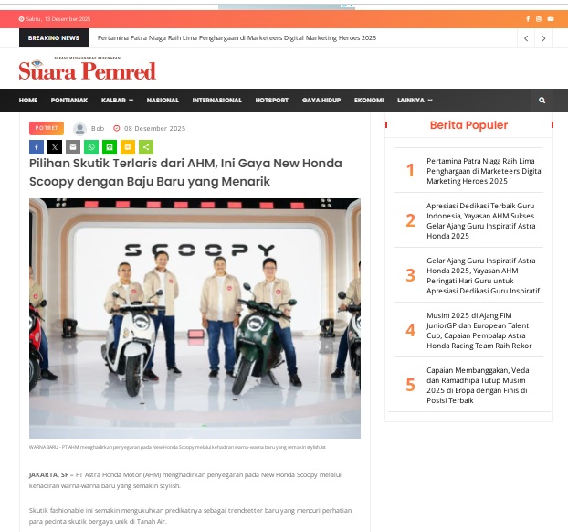 Pilihan Skutik Terlaris dari AHM, Ini Gaya New Honda Scoopy dengan Baju Baru yang Menarik by masmul 8 Desember 2025 in Silahkan kunjungi https://www.suarapemredkalbar.com/read/potret/08122025/pilihan-skutik-terlaris-dari-ahm-ini-gaya-new-honda-scoopy-dengan-baju-baru-yang-menarik. You Might Like Regional Public Launching New ADV160 The SUV Pride Grand Launching New PCX 160 Truly Exceptional! Tetap hati-hati ya bro sist berkendara saat hujan.