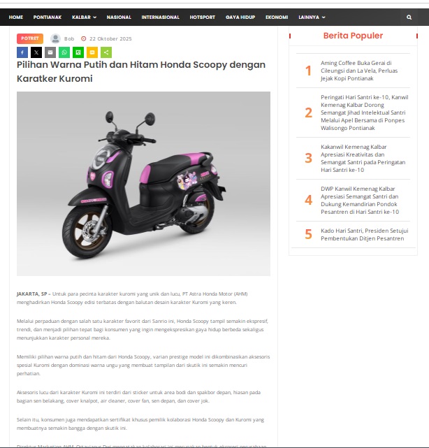 Pilihan Warna Putih dan Hitam Honda Scoopy dengan Karatker Kuromi by masmul 22 Oktober 2025 in Silahkan kunjungi https://www.suarapemredkalbar.com/read/potret/22102025/pilihan-warna-putih-dan-hitam-honda-scoopy-dengan-karatker-kuromi. You Might Like Regional Public Launching New ADV160 The SUV Pride Grand Launching New PCX 160 Truly Exceptional! Tetap hati-hati ya bro sist berkendara saat hujan.