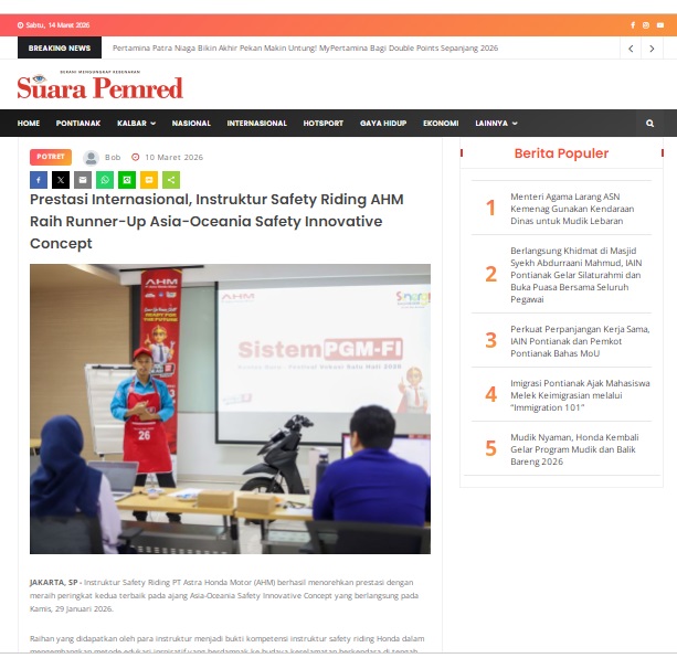 Prestasi Internasional, Instruktur Safety Riding AHM Raih Runner-Up Asia-Oceania Safety Innovative Concept by masmul 10 Maret 2026 in Silahkan kunjungi https://www.suarapemredkalbar.com/read/potret/10032026/prestasi-internasional-instruktur-safety-riding-ahm-raih-runner-up-asia-oceania-safety-innovative-concept. You Might Like Regional Public Launching New ADV160 The SUV Pride Grand Launching New PCX 160 Truly Exceptional! Tetap hati-hati ya bro sist berkendara saat hujan.