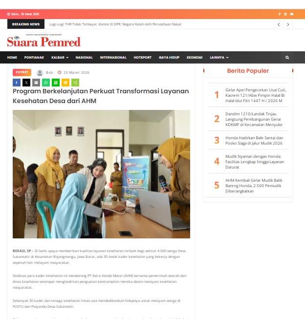 Program Berkelanjutan Perkuat Transformasi Layanan Kesehatan Desa dari AHM by masmul 25 Maret 2026 in Silahkan kunjungi https://www.suarapemredkalbar.com/read/potret/25032026/program-berkelanjutan-perkuat-transformasi-layanan-kesehatan-desa-dari-ahm. You Might Like Regional Public Launching New ADV160 The SUV Pride Grand Launching New PCX 160 Truly Exceptional! Tetap hati-hati ya bro sist berkendara saat hujan.