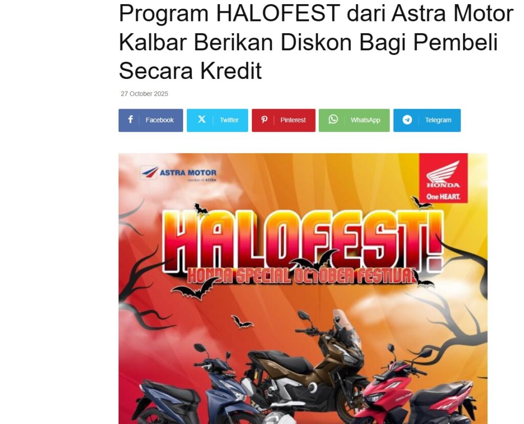 Program HALOFEST dari Astra Motor Kalbar Berikan Diskon Bagi Pembeli Secara Kredit