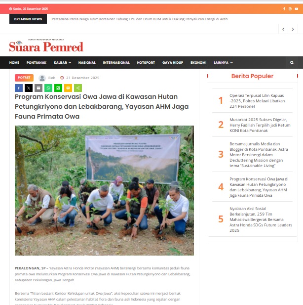 Program Konservasi Owa Jawa di Kawasan Hutan Petungkriyono dan Lebakbarang, Yayasan AHM Jaga Fauna Primata Owa by masmul 21 Desember 2025 in Silahkan kunjungi https://www.suarapemredkalbar.com/read/potret/21122025/program-konservasi-owa-jawa-di-kawasan-hutan-petungkriyono-dan-lebakbarang-yayasan-ahm-jaga-fauna-primata-owa. You Might Like Regional Public Launching New ADV160 The SUV Pride Grand Launching New PCX 160 Truly Exceptional! Tetap hati-hati ya bro sist berkendara saat hujan.
