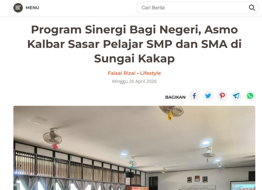 Program Sinergi Bagi Negeri, Asmo Kalbar Sasar Pelajar SMP dan SMA di Sungai Kakap by Dodi Dodi 26 April 2026 in Silahkan kunjungi https://harianberkat.com/2026/04/26/program-sinergi-bagi-negeri-asmo-kalbar-sasar-pelajar-smp-dan-sma-di-sungai-kakap/. You Might Like Regional Public Launching New ADV160 The SUV Pride Grand Launching New PCX 160 Truly Exceptional! Tetap hati-hati ya bro sist berkendara saat hujan.
