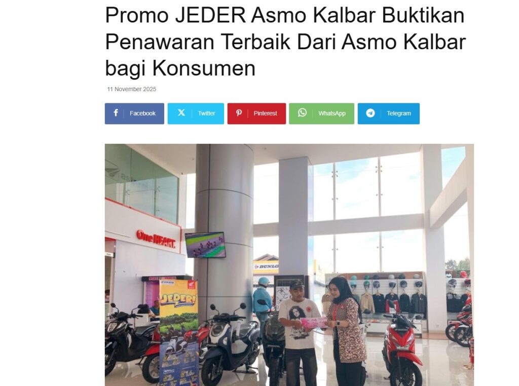 Promo JEDER Asmo Kalbar Buktikan Penawaran Terbaik Dari Asmo Kalbar bagi Konsumen by Nova Sari 11 November 2025 in Silahkan kunjungi https://equator.co.id/promo-jeder-asmo-kalbar-buktikan-penawaran-terbaik-dari-asmo-kalbar-bagi-konsumen/. You Might Like Regional Public Launching New ADV160 The SUV Pride Grand Launching New PCX 160 Truly Exceptional! Tetap hati-hati ya bro sist berkendara saat hujan.