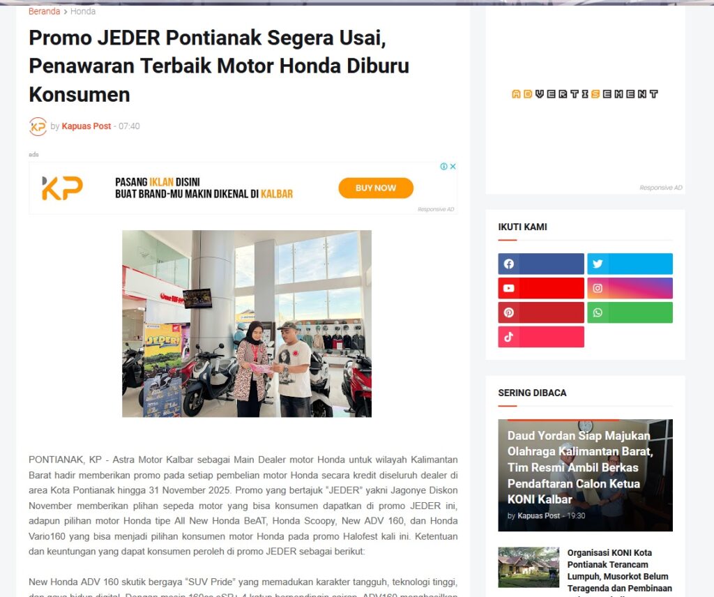 Promo JEDER Pontianak Segera Usai, Penawaran Terbaik Motor Honda Diburu Konsumen