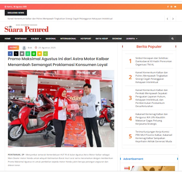 Promo Maksimal Agustus Ini dari Astra Motor Kalbar Menambah Semangat Proklamasi Konsumen Loyal by masmul 25 Agustus 2025 in Silahkan kunjungi https://www.suarapemredkalbar.com/read/potret/25082025/promo-maksimal-agustus-ini-dari-astra-motor-kalbar-menambah-semangat-proklamasi-konsumen-loyal. You Might Like Regional Public Launching New ADV160 The SUV Pride Grand Launching New PCX 160 Truly Exceptional! Tetap hati-hati ya bro sist berkendara saat hujan.
