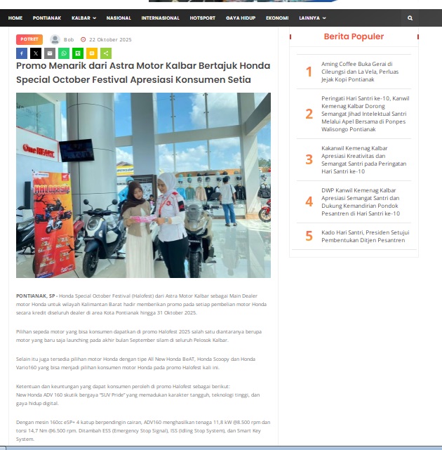 Promo Menarik dari Astra Motor Kalbar Bertajuk Honda Special October Festival Apresiasi Konsumen Setia by masmul 22 Oktober 2025 in Silahkan kunjungi https://www.suarapemredkalbar.com/read/potret/22102025/promo-menarik-dari-astra-motor-kalbar-bertajuk-honda-special-october-festival-apresiasi-konsumen-setia. You Might Like Regional Public Launching New ADV160 The SUV Pride Grand Launching New PCX 160 Truly Exceptional! Tetap hati-hati ya bro sist berkendara saat hujan.