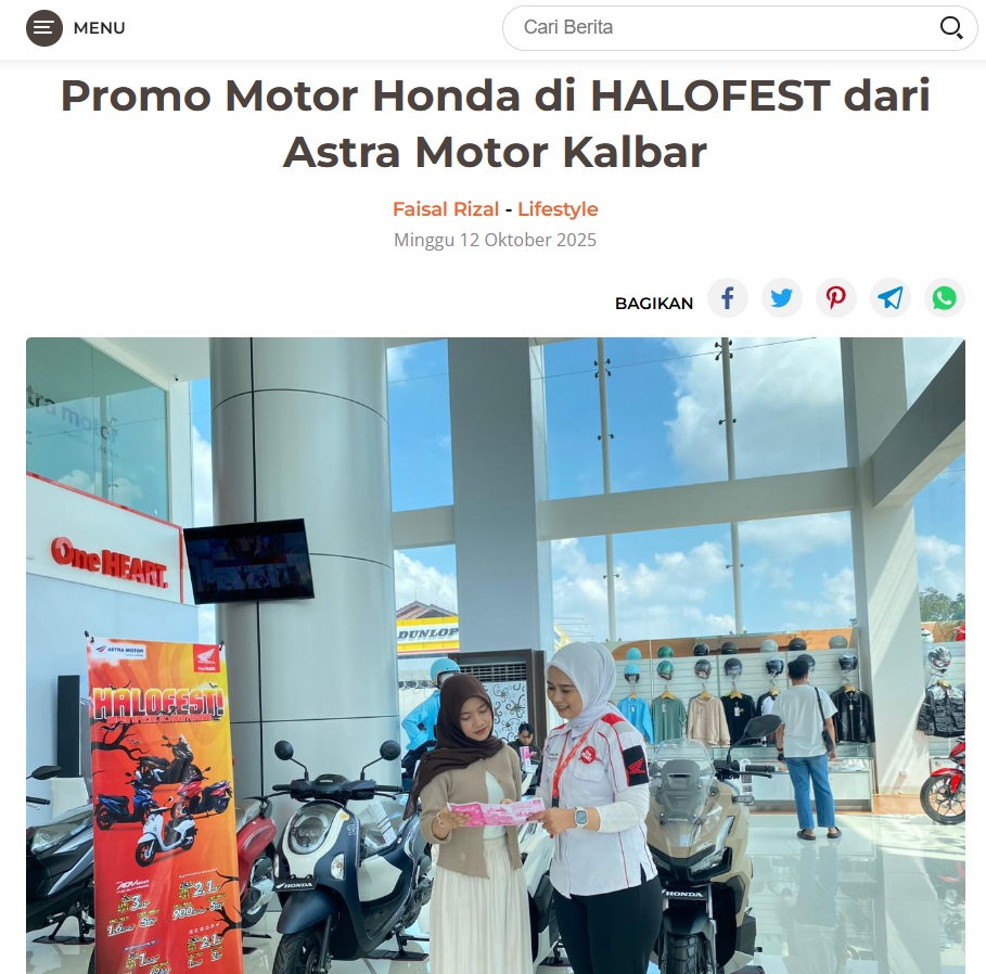Promo Motor Honda di HALOFEST dari Astra Motor Kalbar by Dodi Dodi 12 Oktober 2025 in Silahkan kunjungi https://harianberkat.com/2025/10/12/promo-motor-honda-di-halofest-dari-astra-motor-kalbar/. You Might Like Regional Public Launching New ADV160 The SUV Pride Grand Launching New PCX 160 Truly Exceptional! Tetap hati-hati ya bro sist berkendara saat hujan.