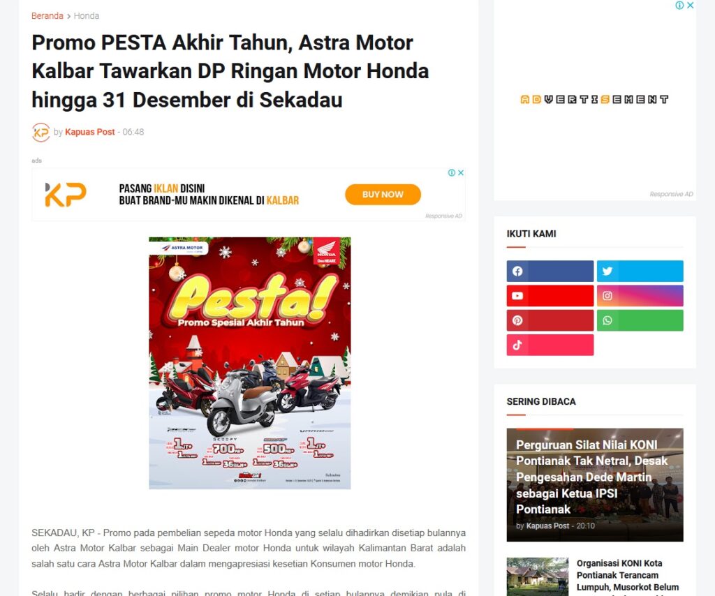 Promo PESTA Akhir Tahun, Astra Motor Kalbar Tawarkan DP Ringan Motor Honda hingga 31 Desember di Sekadau by Muhammad Arif 20 Desember 2025 in Silahkan kunjungi https://www.kapuaspost.web.id/2025/12/promo-pesta-akhir-tahun-astra-motor.html. Tags: astra Astra Motor kalbar Astra Motor Pontianak astramotor honda kalbar pontianak sepeda motor You Might Like Regional Public Launching New ADV160 The SUV Pride Grand Launching New PCX 160 Truly Exceptional! Tetap hati-hati ya bro sist berkendara saat hujan.