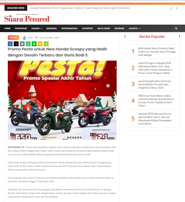 Promo Pesta untuk New Honda Scoopy yang Hadir dengan Desain Terbaru dan Garis Bodi S by masmul 14 Desember 2025 in Silahkan kunjungi https://www.suarapemredkalbar.com/read/potret/14122025/promo-pesta-untuk-new-honda-scoopy-yang-hadir-dengan-desain-terbaru-dan-garis-bodi-s. You Might Like Regional Public Launching New ADV160 The SUV Pride Grand Launching New PCX 160 Truly Exceptional! Tetap hati-hati ya bro sist berkendara saat hujan.