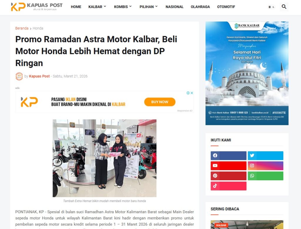 Promo Ramadan Astra Motor Kalbar, Beli Motor Honda Lebih Hemat dengan DP Ringan by Muhammad Arif 21 Maret 2026 in Silahkan kunjungi https://www.kapuaspost.web.id/2026/03/promo-ramadan-astra-motor-kalbar-beli.html. Tags: astra Astra Motor kalbar Astra Motor Pontianak astramotor honda kalbar pontianak sepeda motor You Might Like Regional Public Launching New ADV160 The SUV Pride Grand Launching New PCX 160 Truly Exceptional! Tetap hati-hati ya bro sist berkendara saat hujan.