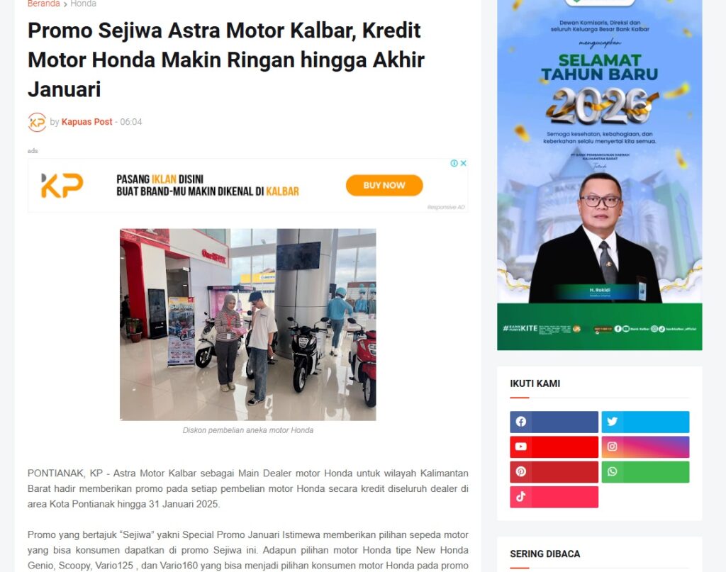 Promo Sejiwa Astra Motor Kalbar, Kredit Motor Honda Makin Ringan hingga Akhir Januari by Muhammad Arif 11 Januari 2026 in Silahkan kunjungi https://www.kapuaspost.web.id/2026/01/promo-sejiwa-astra-motor-kalbar-kredit.html. Tags: astra Astra Motor kalbar Astra Motor Pontianak astramotor honda kalbar pontianak sepeda motor You Might Like Regional Public Launching New ADV160 The SUV Pride Grand Launching New PCX 160 Truly Exceptional! Tetap hati-hati ya bro sist berkendara saat hujan.