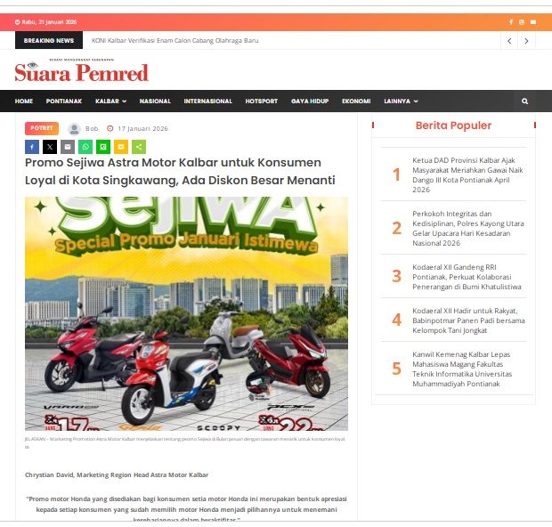 Promo Sejiwa Astra Motor Kalbar untuk Konsumen Loyal di Kota Singkawang, Ada Diskon Besar Menanti by masmul 17 Januari 2026 in Silahkan kunjungi https://www.suarapemredkalbar.com/read/potret/17012026/promo-sejiwa-astra-motor-kalbar-untuk-konsumen-loyal-di-kota-singkawang-ada-diskon-besar-menanti. You Might Like Regional Public Launching New ADV160 The SUV Pride Grand Launching New PCX 160 Truly Exceptional! Tetap hati-hati ya bro sist berkendara saat hujan.