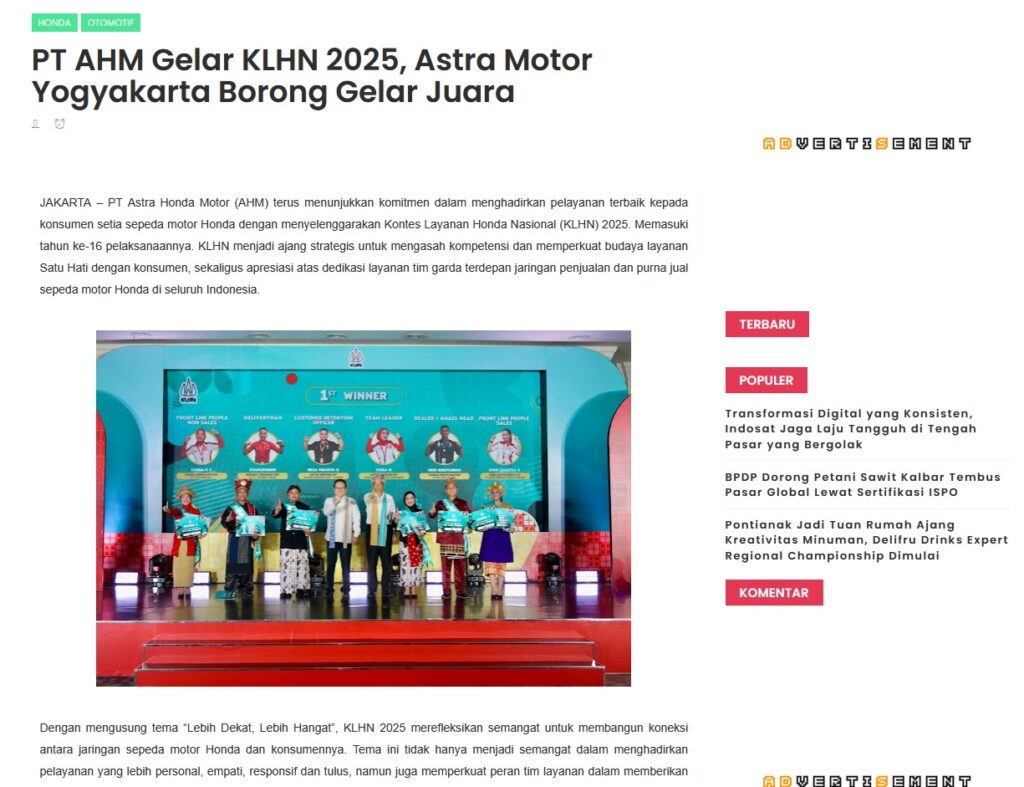 PT AHM Gelar KLHN 2025, Astra Motor Yogyakarta Borong Gelar Juara by Muhammad Arif 23 Agustus 2025 in Silahkan kunjungi https://www.kapuaspost.web.id/2025/08/pt-ahm-gelar-klhn-2025-astra-motor.html. Tags: astra Astra Motor kalbar Astra Motor Pontianak astramotor honda kalbar pontianak sepeda motor You Might Like Regional Public Launching New ADV160 The SUV Pride Grand Launching New PCX 160 Truly Exceptional! Tetap hati-hati ya bro sist berkendara saat hujan.