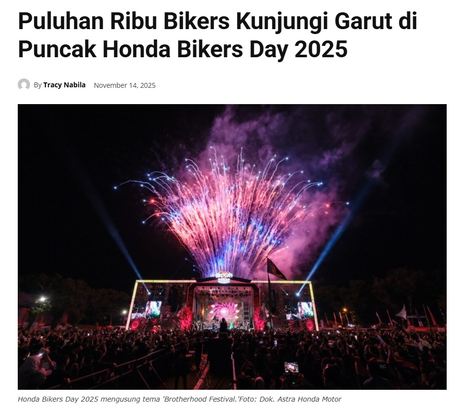 Puluhan Ribu Bikers Kunjungi Garut di Puncak Honda Bikers Day 2025 by Leo Prima 14 November 2025 in Silahkan kunjungi https://pontianaktoday.id/puluhan-ribu-bikers-kunjungi-garut-di-puncak-honda-bikers-day-2025/. You Might Like Regional Public Launching New ADV160 The SUV Pride Grand Launching New PCX 160 Truly Exceptional! Tetap hati-hati ya bro sist berkendara saat hujan.