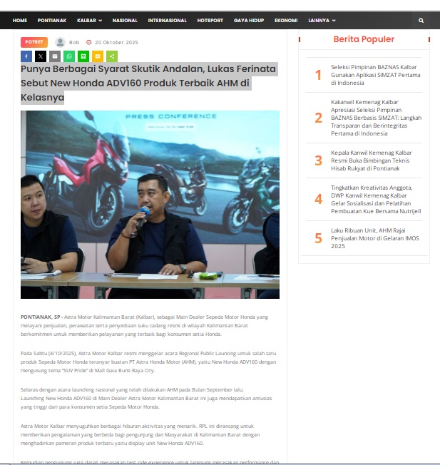 Punya Berbagai Syarat Skutik Andalan, Lukas Ferinata Sebut New Honda ADV160 Produk Terbaik AHM di Kelasnya by masmul 20 Oktober 2025 in Silahkan kunjungi https://www.suarapemredkalbar.com/read/potret/20102025/punya-berbagai-syarat-skutik-andalan-lukas-ferinata-sebut-new-honda-adv160-produk-terbaik-ahm-di-kelasnya. You Might Like Regional Public Launching New ADV160 The SUV Pride Grand Launching New PCX 160 Truly Exceptional! Tetap hati-hati ya bro sist berkendara saat hujan.