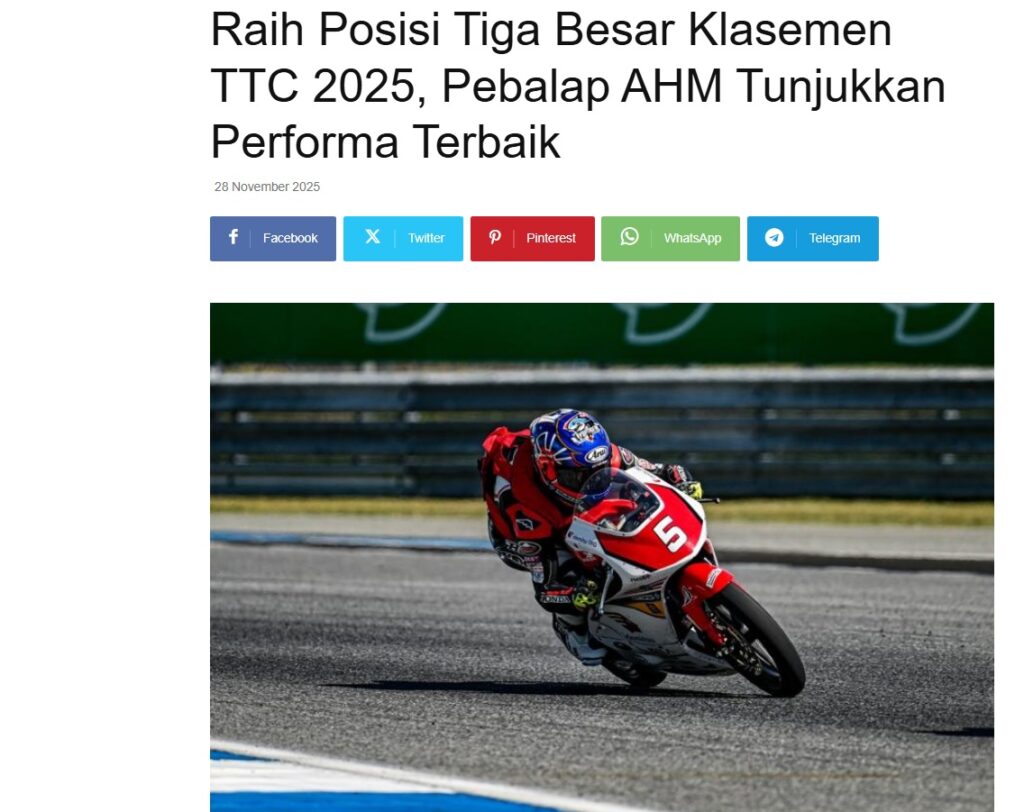 Raih Posisi Tiga Besar Klasemen TTC 2025, Pebalap AHM Tunjukkan Performa Terbaik by Nova Sari 28 November 2025 in Silahkan kunjungi https://equator.co.id/raih-posisi-tiga-besar-klasemen-ttc-2025-pebalap-ahm-tunjukkan-performa-terbaik/. You Might Like Regional Public Launching New ADV160 The SUV Pride Grand Launching New PCX 160 Truly Exceptional! Tetap hati-hati ya bro sist berkendara saat hujan.