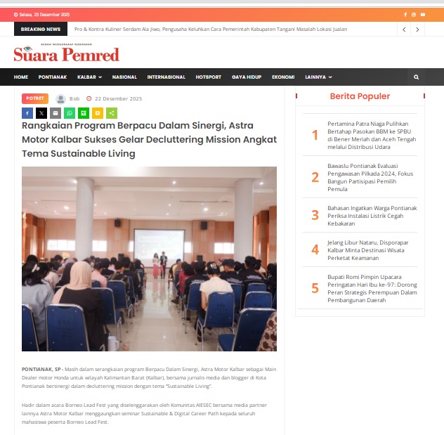 Rangkaian Program Berpacu Dalam Sinergi, Astra Motor Kalbar Sukses Gelar Decluttering Mission Angkat Tema Sustainable Living by masmul 22 Desember 2025 in Silahkan kunjungi https://www.suarapemredkalbar.com/read/potret/22122025/rangkaian-program-berpacu-dalam-sinergi-astra-motor-kalbar-sukses-gelar-decluttering-mission-angkat-tema-sustainable-living. You Might Like Regional Public Launching New ADV160 The SUV Pride Grand Launching New PCX 160 Truly Exceptional! Tetap hati-hati ya bro sist berkendara saat hujan.