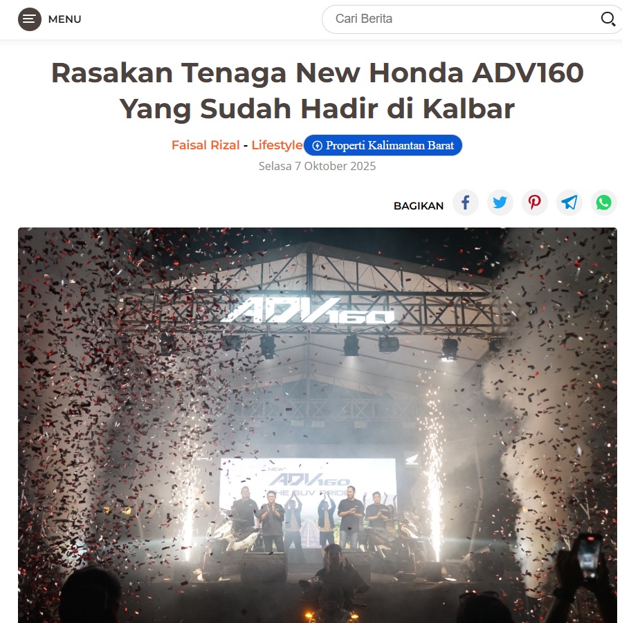 Rasakan Tenaga New Honda ADV160 Yang Sudah Hadir di Kalbar by Dodi Dodi 7 Oktober 2025 in Silahkan kunjungi https://harianberkat.com/2025/10/07/rasakan-tenaga-new-honda-adv160-yang-sudah-hadi-di-kalbar/. You Might Like Regional Public Launching New ADV160 The SUV Pride Grand Launching New PCX 160 Truly Exceptional! Tetap hati-hati ya bro sist berkendara saat hujan.