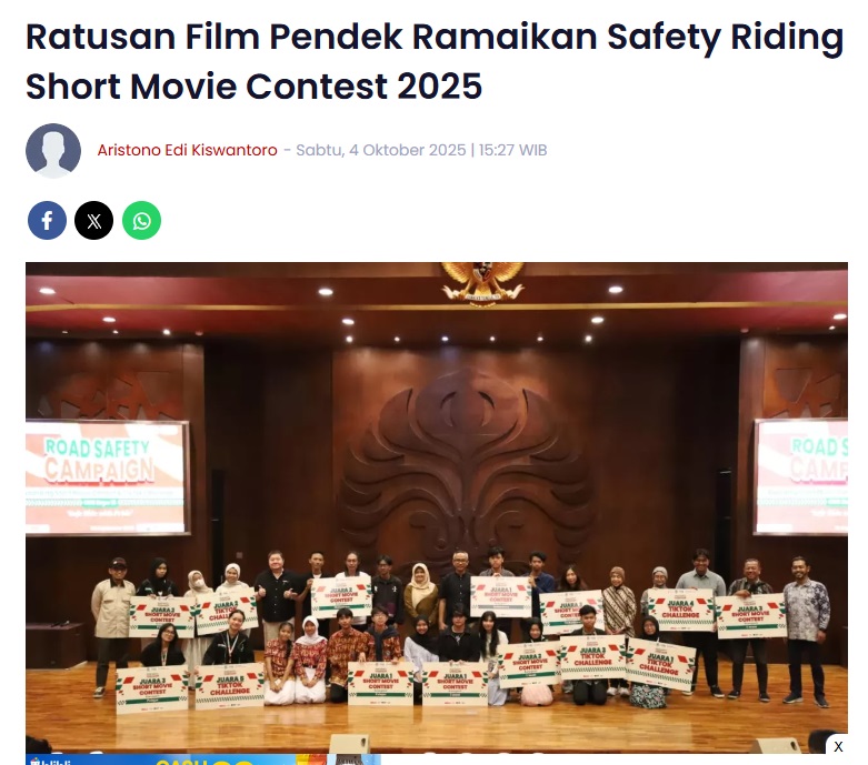 Ratusan Film Pendek Ramaikan Safety Riding Short Movie Contest 2025 by Aristono Edi Kiswantoro 4 Oktober 2025 in Silahkan kunjungi https://pontianakpost.jawapos.com/pro-bisnis/1466659197/ratusan-film-pendek-ramaikan-safety-riding-short-movie-contest-2025. You Might Like Regional Public Launching New ADV160 The SUV Pride Grand Launching New PCX 160 Truly Exceptional! Tetap hati-hati ya bro sist berkendara saat hujan.