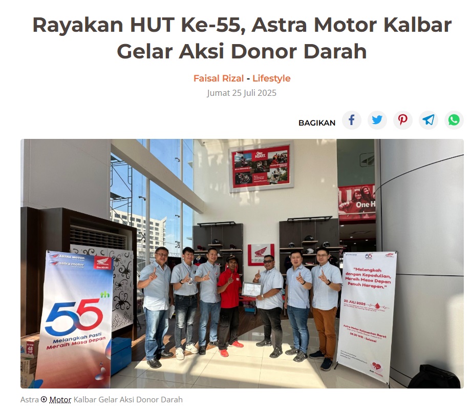 Rayakan HUT Ke-55, Astra Motor Kalbar Gelar Aksi Donor Darah by Dodi Dodi 25 Juli 2025 in Silahkan kunjungi https://harianberkat.com/2025/07/25/rayakan-hut-ke-55-astra-motor-kalbar-gelar-aksi-donor-darah/. You Might Like Regional Public Launching New ADV160 The SUV Pride Grand Launching New PCX 160 Truly Exceptional! Tetap hati-hati ya bro sist berkendara saat hujan.