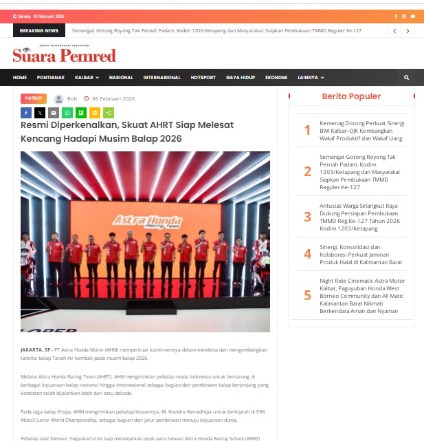 Resmi Diperkenalkan, Skuat AHRT Siap Melesat Kencang Hadapi Musim Balap 2026 by masmul 6 Februari 2026 in Silahkan kunjungi https://www.suarapemredkalbar.com/read/potret/06022026/resmi-diperkenalkan-skuat-ahrt-siap-melesat-kencang-hadapi-musim-balap-2026. You Might Like Regional Public Launching New ADV160 The SUV Pride Grand Launching New PCX 160 Truly Exceptional! Tetap hati-hati ya bro sist berkendara saat hujan.