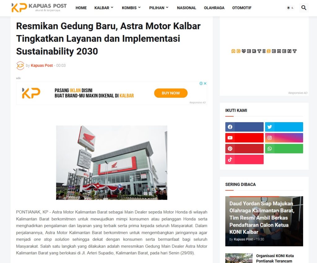 Resmikan Gedung Baru, Astra Motor Kalbar Tingkatkan Layanan dan Implementasi Sustainability 2030 by Muhammad Arif 23 November 2025 in Silahkan kunjungi https://www.kapuaspost.web.id/2025/11/resmikan-gedung-baru-astra-motor-kalbar.html. Tags: astra Astra Motor kalbar Astra Motor Pontianak astramotor honda kalbar pontianak sepeda motor You Might Like Regional Public Launching New ADV160 The SUV Pride Grand Launching New PCX 160 Truly Exceptional! Tetap hati-hati ya bro sist berkendara saat hujan.