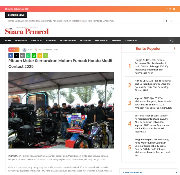 Ribuan Motor Semarakan Malam Puncak Honda Modif Contest 2025 by masmul 23 Desember 2025 in Silahkan kunjungi https://www.suarapemredkalbar.com/read/potret/23122025/ribuan-motor-semarakan-malam-puncak-honda-modif-contest-2025. You Might Like Regional Public Launching New ADV160 The SUV Pride Grand Launching New PCX 160 Truly Exceptional! Tetap hati-hati ya bro sist berkendara saat hujan.