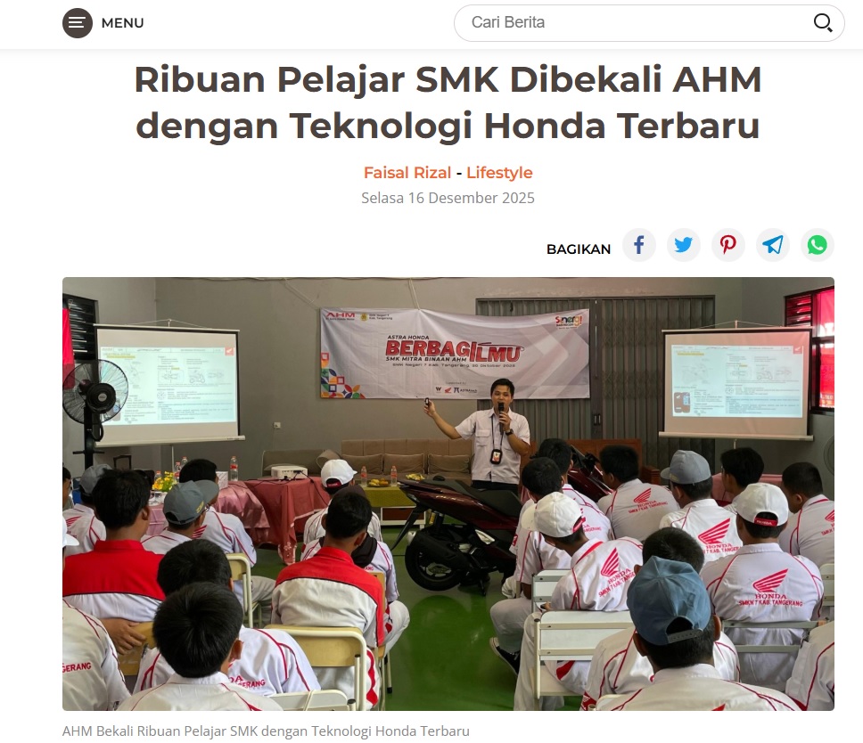 Ribuan Pelajar SMK Dibekali AHM dengan Teknologi Honda Terbaru by Dodi Dodi 16 Desember 2025 in Silahkan kunjungi https://harianberkat.com/2025/12/16/ribuan-pelajar-smk-dibekali-ahm-dengan-teknologi-honda-terbaru/. You Might Like Regional Public Launching New ADV160 The SUV Pride Grand Launching New PCX 160 Truly Exceptional! Tetap hati-hati ya bro sist berkendara saat hujan.