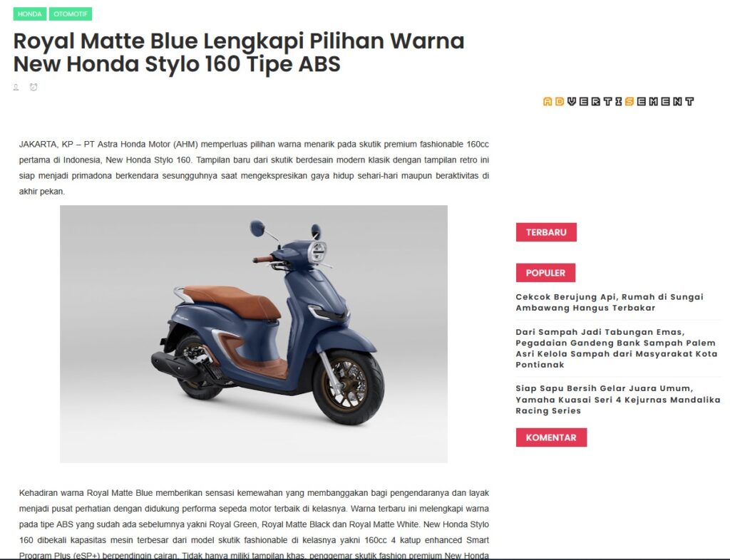 Royal Matte Blue Lengkapi Pilihan Warna New Honda Stylo 160 Tipe ABS by Muhammad Arif 22 September 2025 in Silahkan kunjungi https://www.kapuaspost.web.id/2025/09/royal-matte-blue-lengkapi-pilihan-warna.html. Tags: astra Astra Motor kalbar Astra Motor Pontianak astramotor honda kalbar pontianak sepeda motor You Might Like Regional Public Launching New ADV160 The SUV Pride Grand Launching New PCX 160 Truly Exceptional! Tetap hati-hati ya bro sist berkendara saat hujan.