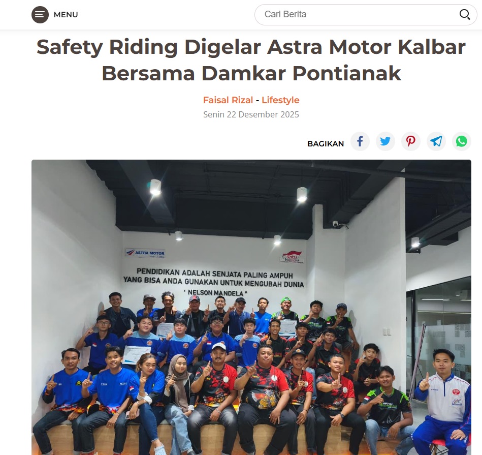 Safety Riding Digelar Astra Motor Kalbar Bersama Damkar Pontianak by Dodi Dodi 22 Desember 2025 in Silahkan kunjungi https://harianberkat.com/2025/12/22/safety-riding-digelar-astra-motor-kalbar-bersama-damkar-pontianak/. You Might Like Regional Public Launching New ADV160 The SUV Pride Grand Launching New PCX 160 Truly Exceptional! Tetap hati-hati ya bro sist berkendara saat hujan.