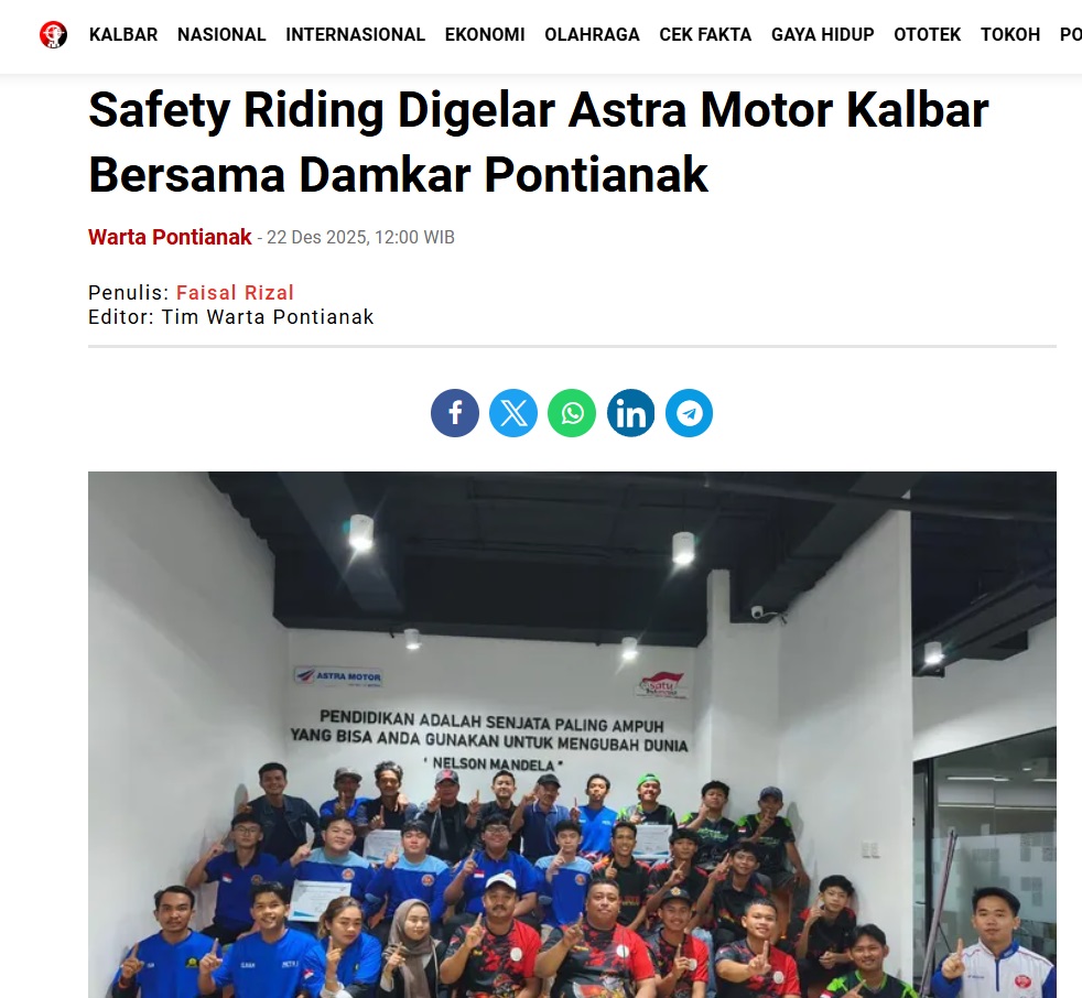 Safety Riding Digelar Astra Motor Kalbar Bersama Damkar Pontianak by Faisal Rizal 22 Desember 2025 in Silahkan kunjungi https://wartapontianak.pikiran-rakyat.com/gaya-hidup/pr-1179879055/safety-riding-digelar-astra-motor-kalbar-bersama-damkar-pontianak. You Might Like Regional Public Launching New ADV160 The SUV Pride Grand Launching New PCX 160 Truly Exceptional! Tetap hati-hati ya bro sist berkendara saat hujan.