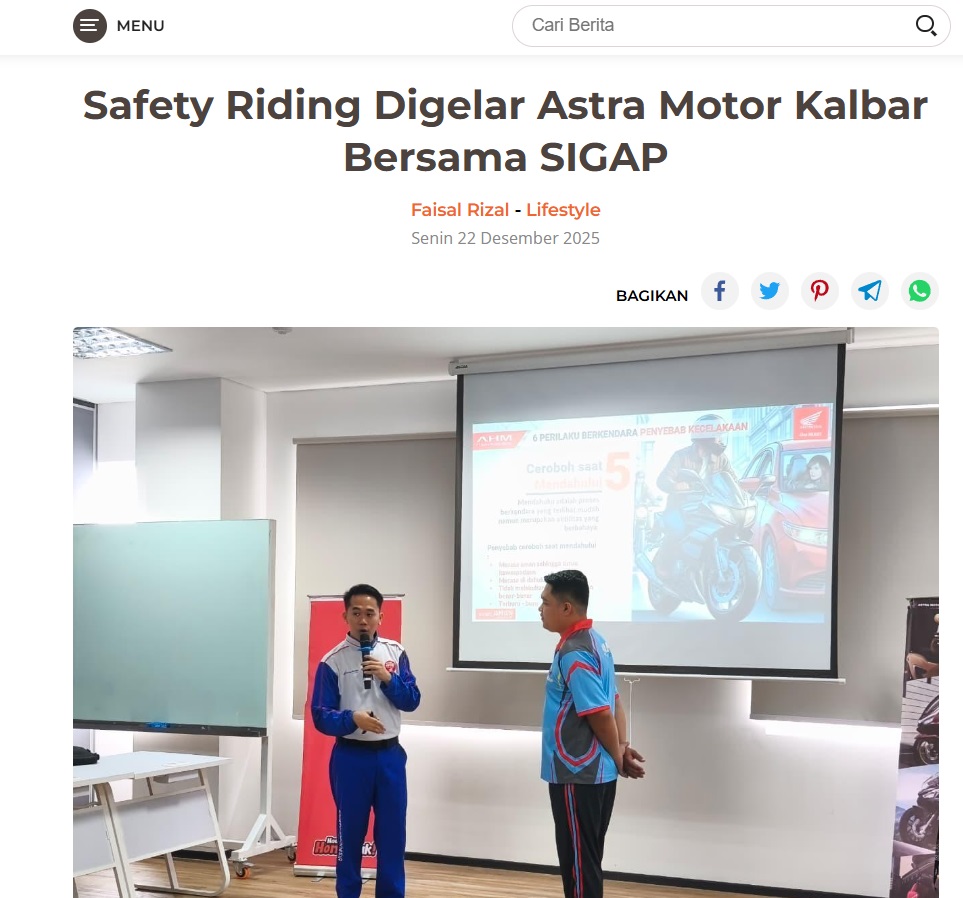 Safety Riding Digelar Astra Motor Kalbar Bersama SIGAP by Dodi Dodi 22 Desember 2025 in Silahkan kunjungi https://harianberkat.com/2025/12/22/safety-riding-digelar-astra-mtor-kalbar-bersama-sigap/. You Might Like Regional Public Launching New ADV160 The SUV Pride Grand Launching New PCX 160 Truly Exceptional! Tetap hati-hati ya bro sist berkendara saat hujan.