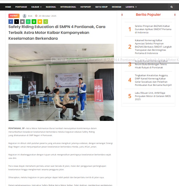 Safety Riding Education di SMPN 4 Pontianak, Cara Terbaik Astra Motor Kalbar Kampanyekan Keselamatan Berkendara by masmul 20 Oktober 2025 in Silahkan kunjungi https://www.suarapemredkalbar.com/read/potret/20102025/safety-riding-education-di-smpn-4-pontianak-cara-terbaik-astra-motor-kalbar-kampanyekan-keselamatan-berkendara. You Might Like Regional Public Launching New ADV160 The SUV Pride Grand Launching New PCX 160 Truly Exceptional! Tetap hati-hati ya bro sist berkendara saat hujan.