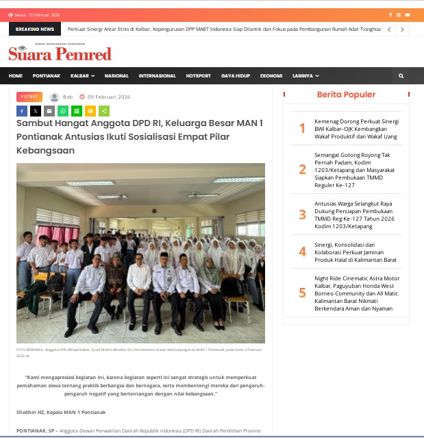 Sambut Hangat Anggota DPD RI, Keluarga Besar MAN 1 Pontianak Antusias Ikuti Sosialisasi Empat Pilar Kebangsaan by masmul 9 Februari 2026 in Silahkan kunjungi https://www.suarapemredkalbar.com/read/potret/09022026/sambut-hangat-anggota-dpd-ri-keluarga-besar-man-1-pontianak-antusias-ikuti-sosialisasi-empat-pilar-kebangsaan. You Might Like Regional Public Launching New ADV160 The SUV Pride Grand Launching New PCX 160 Truly Exceptional! Tetap hati-hati ya bro sist berkendara saat hujan.