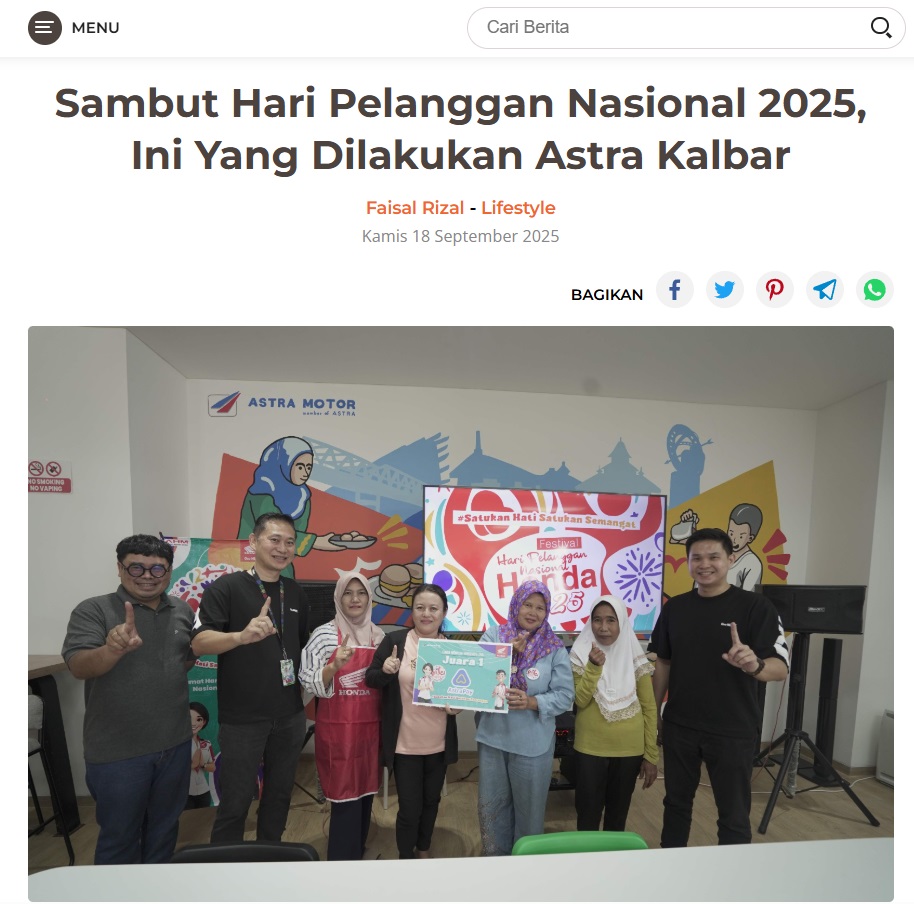 Sambut Hari Pelanggan Nasional 2025, Ini Yang Dilakukan Astra Kalbar by Dodi Dodi 18 September 2025 in Silahkan kunjungi https://harianberkat.com/2025/09/18/sambut-hari-pelanggan-nasional-2025-ini-yang-dilakukan-astra-kalbar/. You Might Like Regional Public Launching New ADV160 The SUV Pride Grand Launching New PCX 160 Truly Exceptional! Tetap hati-hati ya bro sist berkendara saat hujan.