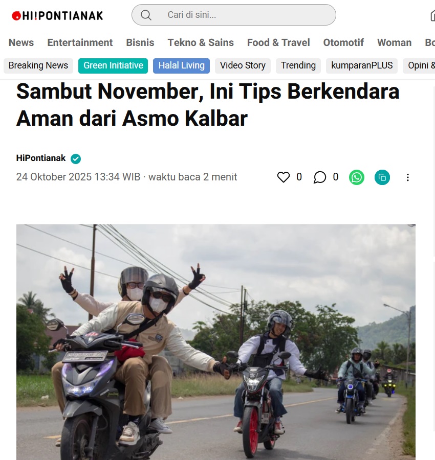 Sambut November, Ini Tips Berkendara Aman dari Asmo Kalbar by Leo Prima 24 Oktober 2025 in Silahkan kunjungi https://kumparan.com/hipontianak/266htEsMax9?utm_source=App&utm_medium=wa&shareID=fTHA31Ba7Pbi. You Might Like Regional Public Launching New ADV160 The SUV Pride Grand Launching New PCX 160 Truly Exceptional! Tetap hati-hati ya bro sist berkendara saat hujan.