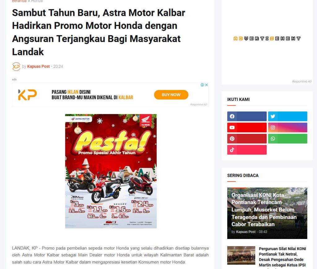 Sambut Tahun Baru, Astra Motor Kalbar Hadirkan Promo Motor Honda dengan Angsuran Terjangkau Bagi Masyarakat Landak by Muhammad Arif 13 Desember 2025 in Silahkan kunjungi https://www.kapuaspost.web.id/2025/12/sambut-tahun-baru-astra-motor-kalbar.html. Tags: astra Astra Motor kalbar Astra Motor Pontianak astramotor honda kalbar pontianak sepeda motor You Might Like Regional Public Launching New ADV160 The SUV Pride Grand Launching New PCX 160 Truly Exceptional! Tetap hati-hati ya bro sist berkendara saat hujan.