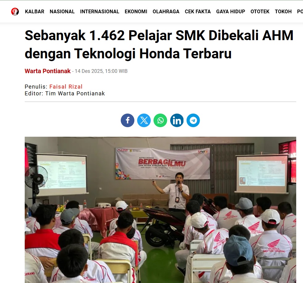 Sebanyak 1.462 Pelajar SMK Dibekali AHM dengan Teknologi Honda Terbaru by Faisal Rizal 14 Desember 2025 in Silahkan kunjungi https://wartapontianak.pikiran-rakyat.com/gaya-hidup/pr-1179861373/sebanyak-1462-pelajar-smk-dibekali-ahm-dengan-teknologi-honda-terbaru. You Might Like Regional Public Launching New ADV160 The SUV Pride Grand Launching New PCX 160 Truly Exceptional! Tetap hati-hati ya bro sist berkendara saat hujan.
