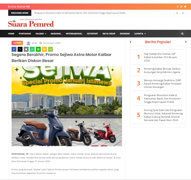 Segera Berakhir, Promo Sejiwa Astra Motor Kalbar Berikan Diskon Besar by masmul 30 Januari 2026 in Silahkan kunjungi https://www.suarapemredkalbar.com/read/potret/30012026/segera-berakhir-promo-sejiwa-astra-motor-kalbar-berikan-diskon-besar. You Might Like Regional Public Launching New ADV160 The SUV Pride Grand Launching New PCX 160 Truly Exceptional! Tetap hati-hati ya bro sist berkendara saat hujan.